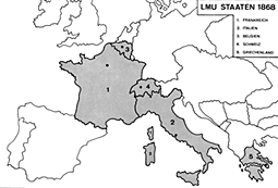 Um 1860 prägte folglich halb Europa nach einem einheitlichen Münzfuss, und es war nur eine logische Folgerung, dass man eine gemeinsame Union anstreben würde.